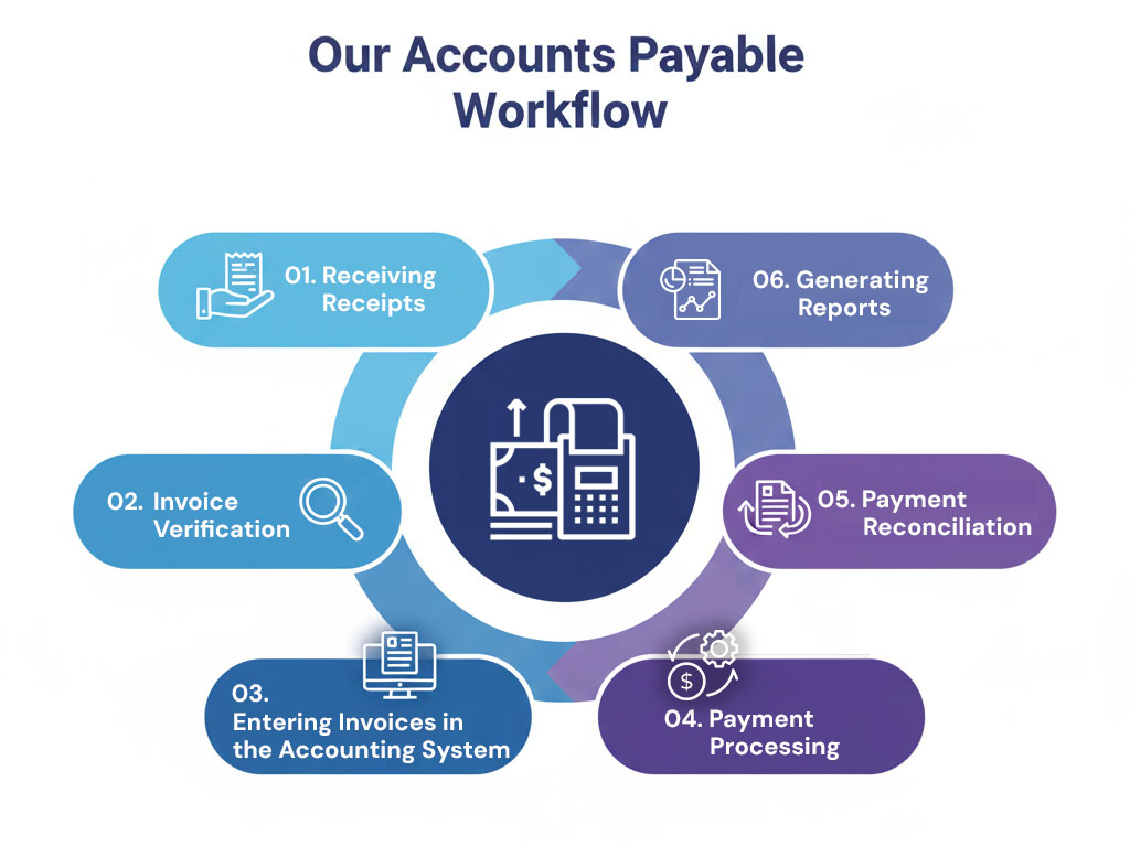 Automate your payables, reduce processing errors, and improve vendor relationships with our expert Accounts Payable (AP) Management solutions. We help you gain complete visibility and control over your business expenses